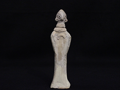 In Tell Genderes wurden auch Objekte der mittleren bis späten Bronzezeit gefunden. Dieses Stück aus der Sammlung Dufner der Universität Konstanz steht in der Ausstellung stellvertretend für eine bronzezeitliche Frauenfigurine aus Tell Genderes, welche aufgrund der politischen Umstände nicht aus Aleppo entliehen werden konnte.